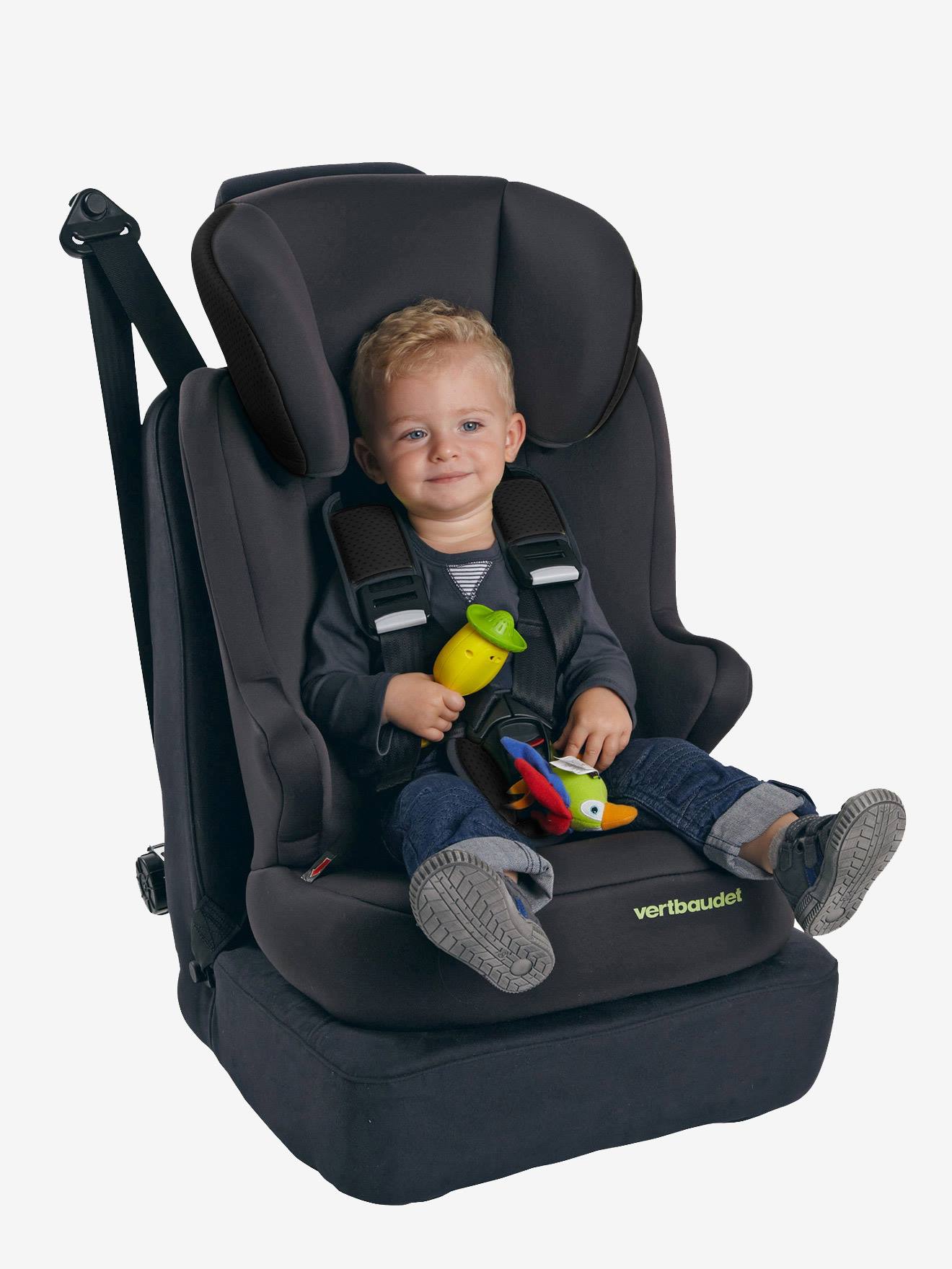 - Dos 15 aos 36 kg: a criança senta-se no assento com encosto, bem segura pelo cinto de segurança do automóvel.