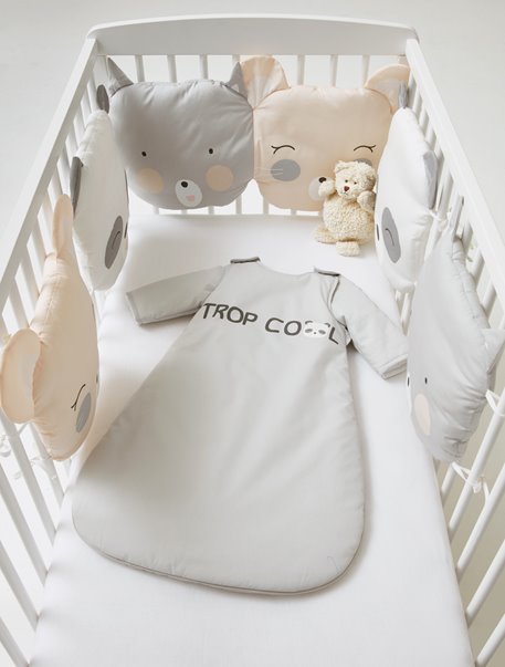 Saiba mais... Um contorno de berço muito giro que pode modular ao seu gosto graças aos atilhos pequenos! Ratos, gatos e pandas envolvem a cama de suavidade e protegem o bebé de eventuais choques.