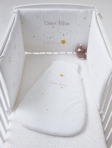 Saiba mais... Os ursos cheios de ternura que vão acompanhar o bebé em sonhos suaves e cheios de estrelas, estão neste contorno de berço que protege e acalma o bebé durante o seu sono.